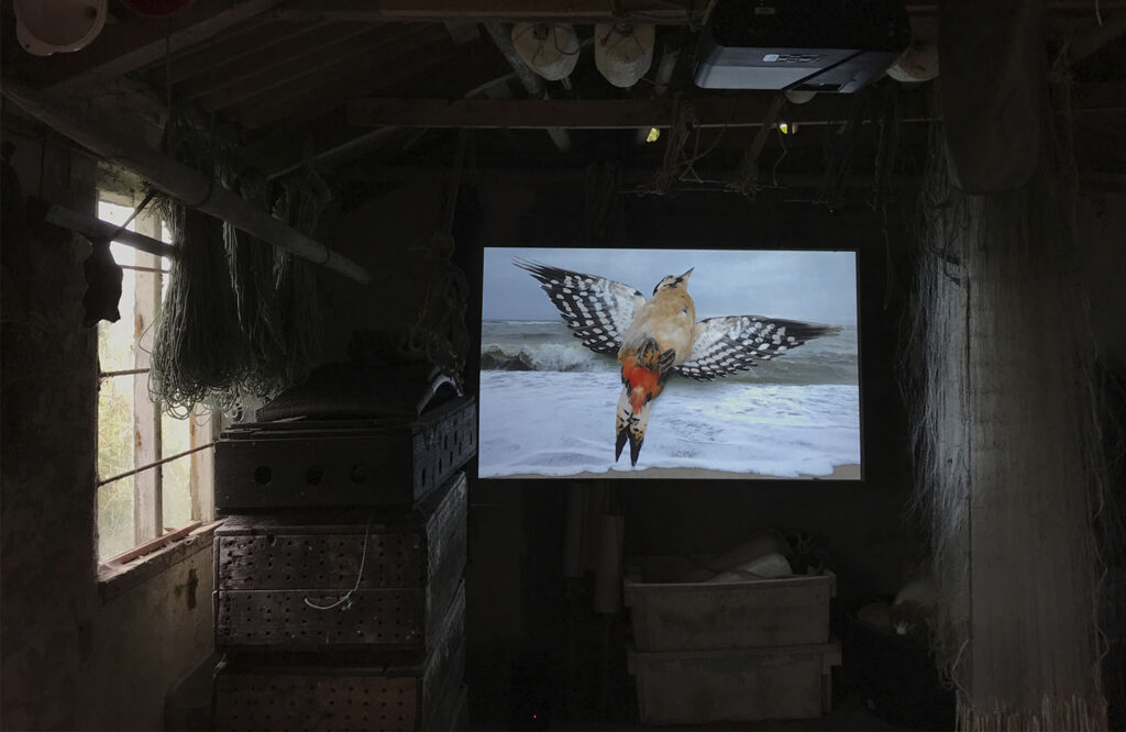Sandsigersken var installeret i et lille fiskerhus i Helm Klink Havn mellem Nissum Fjord og Vesterhavet i 2019.