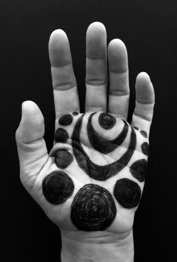 Jeg løb ikke og ville vise ham, at jeg havde masser af tid, så jeg satte mig hos ham. Han hed Thulani. Han tog min hånd og tegnede et mønster på min håndflade, mens han talte om tiden som en cirkulær og en lineær størrelse. Og om en dybere læring om tid, som må genetableres i Verden, så vi kan få balance mellem vores horisontale og vertikale perspektiv.